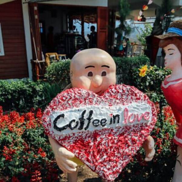 coffee in love恋爱咖啡馆,一个咖啡馆竟然因为它的浪漫而出名,到泰国一定要来这里感受浪漫,哪怕你是单身。黄色的小洋房是咖啡馆的标志性建筑,还有充满怀旧的红色卡车,到处充满爱的字样,来到这里一下子心都...coffee in love恋爱咖啡馆,一个咖啡馆竟然因为它的浪漫而出名,到泰国一定要来这里感受浪漫,哪怕你是单身。黄色的小洋房是咖啡馆的标志性建筑,还有充满怀旧的红色卡车,到处充满爱的字样,来到这里一下子心都柔软了,如果在搭配个蓝天白云艳阳天真的美极了,感觉一切都是电视中的偶像剧场景。作为pai的旅游地标性建筑,它真的大名鼎鼎,想要拍出美丽的景致网上都有针对它的攻略,我在攻略中看了无数次这里的美景,当真的来到其中依然觉得美不胜收。不少人专门来这里就是为了拍照,骑机车凹造型,三三两两好不热闹。不过人家本质还是一个咖啡厅,不要忘记品尝这里的咖啡和蛋糕,虽然我已经不在乎咖啡的味道了,蛋糕小巧精致我还是挺喜欢的,点上一杯搭配一个蛋糕,坐在窗口体会浪漫。他们家有咖啡豆和咖啡粉也是出售的,20哦多一罐子可以买了送给朋友。营业室见识早上7:00到晚上18:30,我看不少人先于开门前就到了,可能是为了避开人群拍照吧。如果自己去就骑车沿1095公路一直向南,三公里左右,沿途这个公路所有的景点正好逛一下,当然也可以报一日团都是游戏这个景点的。