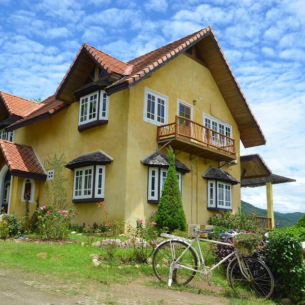 黄房子不知道为什么成了如此热门的景点。可能正是因为LOVE IN PAI这部电影吧。建筑确实蛮有特色,不过当做景点的话稍微有点小了。房子本身是不能入内的,只能在门口拍些照片。由于色彩艳丽、周围的装饰也好看,所...黄房子不知道为什么成了如此热门的景点。可能正是因为LOVE IN PAI这部电影吧。建筑确实蛮有特色,不过当做景点的话稍微有点小了。房子本身是不能入内的,只能在门口拍些照片。由于色彩艳丽、周围的装饰也好看,所以拍出的照片效果还是很不错的。可以说是拍照圣地吧~我们是从aya service租了摩托车一路从镇子中心骑摩托过来的。拜县本来就不大,骑摩托且熟悉道路的情况下15分钟就能到达了。Coffee in love就在黄房子的旁边,坐下来喝一杯饮料凉快一下也是个不错的选择。在这种节奏很慢的小城,本就应该走走停停,欣赏路上的风景。由于景点很小,建议与草莓园、二站桥安排在同一天行程,时间也会非常宽松。沿路还会有很多不错的小咖啡馆随时可以坐下来休息哦~