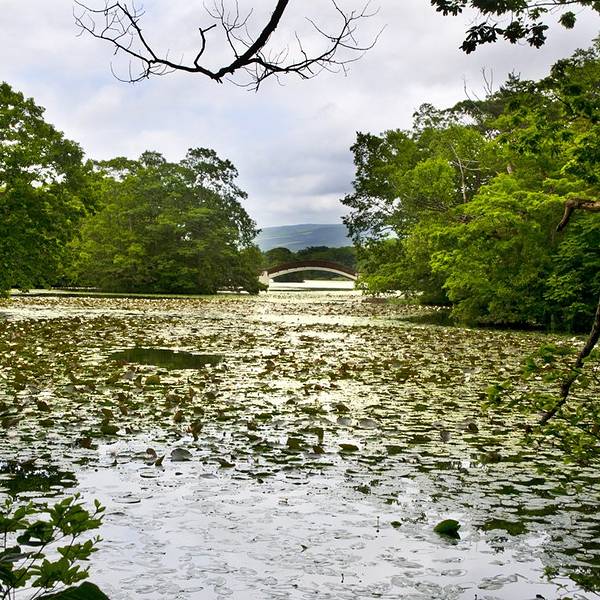 大沼湖面很大,平静清澈,湖中小岛很多,树木茂密,岛间小桥相连,许多小湖中开满睡莲,美不胜收的环境,行走在这样的清新、自然而美好的环境中心旷神怡。