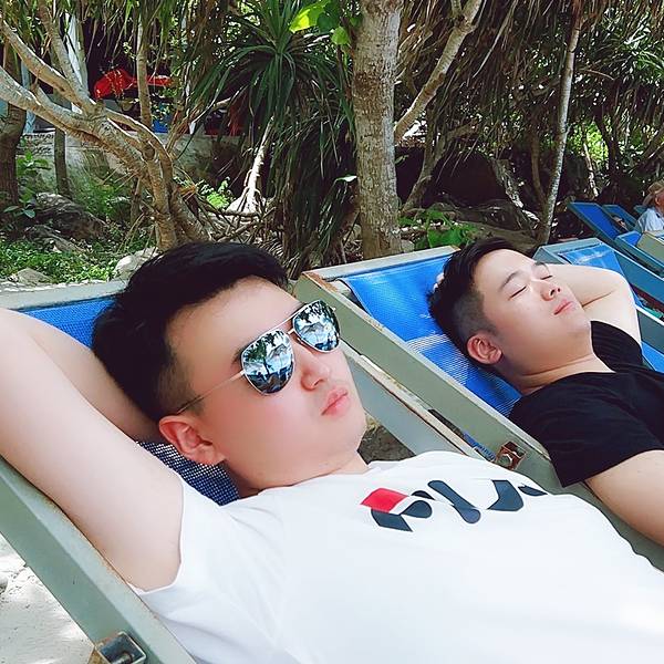 大约半小时后在教练的带领下回到了浮岛结束了潜水。竹岛潜水竹岛潜水竹岛潜水竹岛潜水竹岛潜水竹岛潜水竹岛潜水 坐在凉棚里休息的时候,身边传来一阵阵奇怪的歌声。竹岛的游客大多都是前来潜水或者玩拖伞的,而且人数并不太多,不过下午3点,岛上竟看不到太多游客,一旁的小贩们便早早收了摊,三五成群聚在一起,有的围坐起来玩着看不懂的牌,有的则烤上了自己带来的海鱼,一边喝酒一边打开了手提音箱现场唱起了露天KTV。