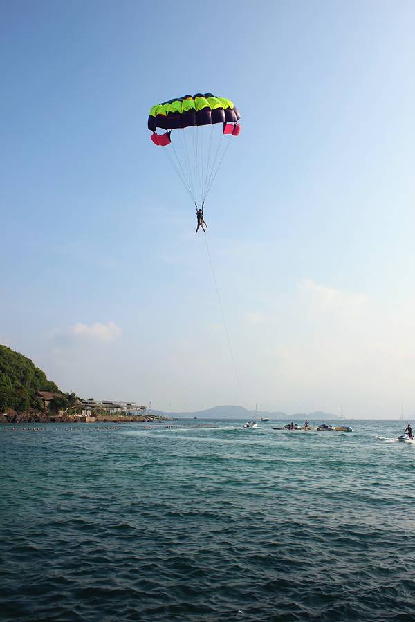 这一个小时完全是在日光浴,躺在沙滩椅上闭目养神。这里也有人肉风筝,助跑是在沙滩上。