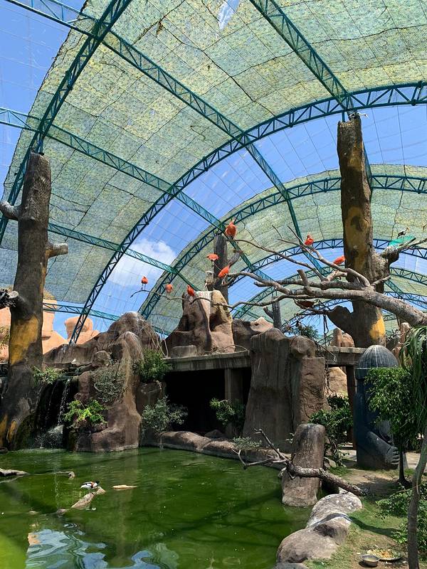 作为一个游乐园里的动物园,珍珠岛的这个动物园是很大的了。也不知道为什么很多女生都喜欢火烈鸟,也不敢问啊!就连家里买的相册、桌布、床单、被套、枕套全部都是有火烈鸟的元素的。五彩阶梯,超级适合拍照。珍珠岛上的网红项目:高山飞车