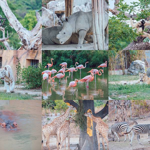 动物园里有什么,猴子、犀牛、老虎、狮子、河马、长颈鹿、斑马、羚羊、豹子、火烈鸟....