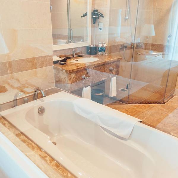 拍照指数:⭐⭐⭐⭐⭐一碗14RMB的地道越南鸡肉饭开启了我们的珍珠岛之行。在岛上住宿的客人,都须到这里办理入住,行李会直接托运到岛上酒店,拿到房卡后再选择坐缆车或快艇登岛。客人还需录入头像,头像相当于岛上的通行证,凭头像才可反复进出游乐园和乘坐往返快艇,体验各种娱乐设施。从码头眺望,珍珠岛的城堡和摩天轮以及跨海缆车。这是整个珍珠岛的地图,分了有几大区别,分别是Vinpearl广场、神话广场、美食街、海洋广场、水上乐园、冒险游戏以及花园....入住的酒店不同,等车的位置也就不同,如果你不清楚,把房卡给工作人员看,他会告诉你在哪个位置等摆渡车的。我们入住的是Vinpearl Resort & Spa Nha Trang Bay这家酒店,房间很大,带阳台和浴缸,我在携程上查过价格,差不多要700多人民币一晚,如果是想要靠海的那边就要贵100块钱。这家酒店自带的私人沙滩是我去过那么多海边,踩过那么多沙滩后,觉得最好最细最舒服的沙滩,没有之一,因为这里的沙踩上去很软和,一点都不硌脚,就包括穿着鞋子去踩沙,沙子进鞋了,也压根不会觉得硌脚。