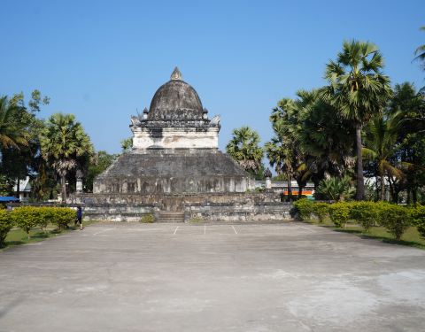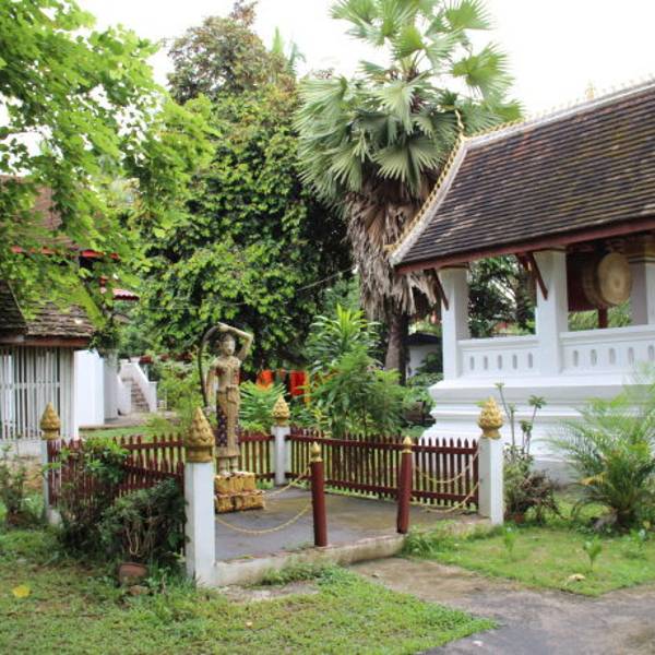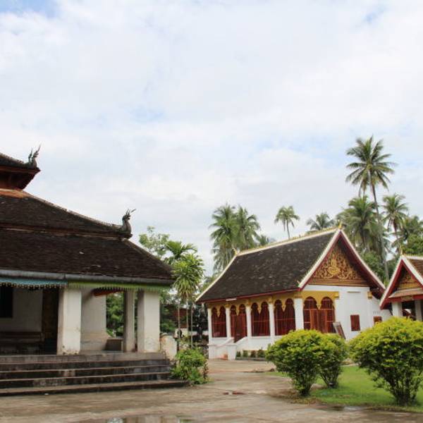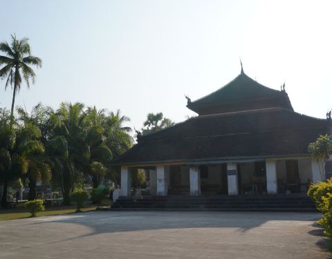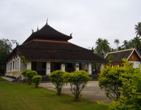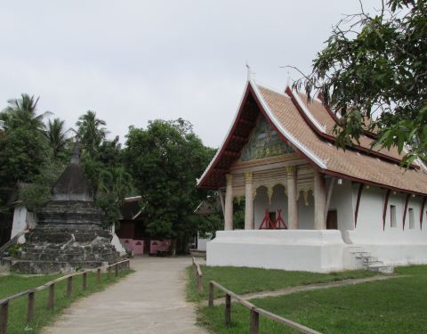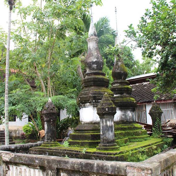 现在的寺庙是砖混结构的,看上去没有那么古朴,但景色非常好。但是19世纪的一把大火,把他几乎灭迹外观很不起眼的地方, 偶然路过才有机会一睹真容。据说这里是埋骨琅勃拉邦奠基人的地方。但是19世纪的一把大火,把他几乎灭迹。现在的寺庙是砖混结构的,看上去没有那么古朴,但景色非常好。