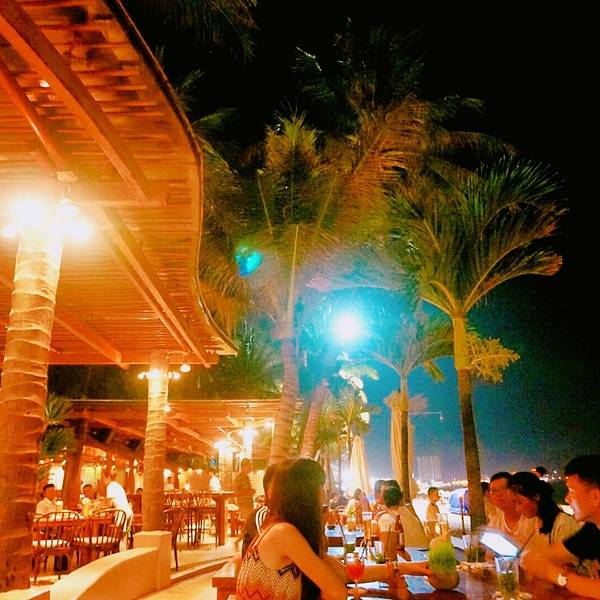 环境很好,团队旅客很多,发现了一个重要的问题是有要事先交费的,这是个什么鬼,发现老外也很多,很高兴可以在沙滩到处走,食物很丰富,但是感觉没什么想吃的,环境有点吵,不过很放松,夜生活就从这里开始了。