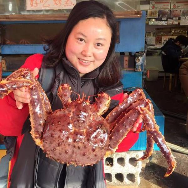 特意选择了第四天不要早饭,因为函馆早市呗。 为了这篇游记,我不惜牺牲自己的真实面容,放出一张和帝王蟹的合影。 其实,我的内心是崩溃的。。。 内什么,主要看才华,看才华!!! 再说一句:敢和我比脸大的,...
