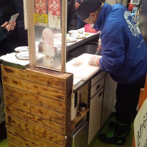 函馆JR站东行约3分钟可以看到,很早大约7点就开门了,这里特色是寿司,味噌汤,餐桌有免费id宇治抹茶,可以自己掺水喝,味道微苦不太是我喜欢的味道,最有名的是鲑鱼、三文鱼寿司,另外运气好,还能吃到新鲜的海胆,夏天还有限定出售的樱花虾盖饭,人均一餐130元上下味道还挺不错的。 店内的寿司是论份卖的,单买的话价格不划算,一个就投约15元,但是4个一组的只要不到30元,明显胜出。芥末的辣味很足,配合清爽的酱油,送入口中真觉得好新鲜,一点都不腥。盖饭的话种类比较多,普遍挺腥的,大家考虑下要不要挑战。味噌汤推荐长脚蟹汤,这可是来自北海道钊路市的特产,很鲜甜