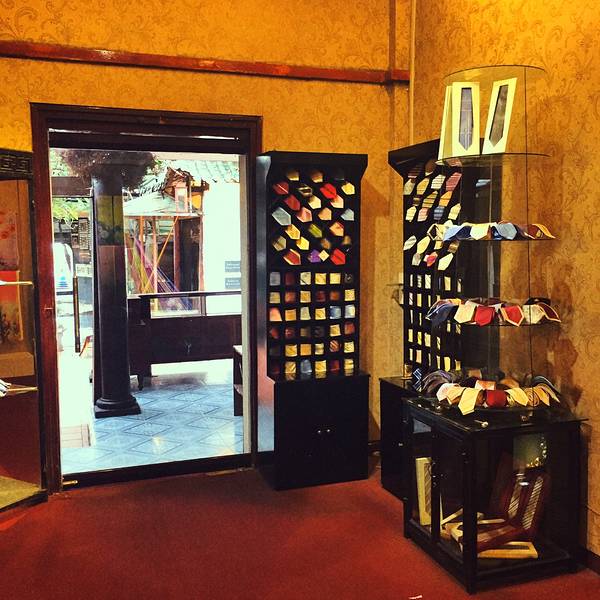 店铺设计成传统村庄的模样,妇女身着民族服饰奥黛细心的完成他们的绣品。领带专区也很好看哦