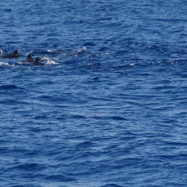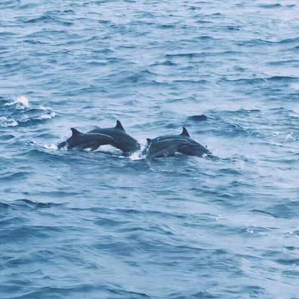 大约出海一个多小时就可以看到海豚群,虽说是观鲸,但可以看到一群群海豚在海面跳跃的壮观景象也是很值得的。海豚群出现了很多次,或远或近,可以拍到很多照片和视频。