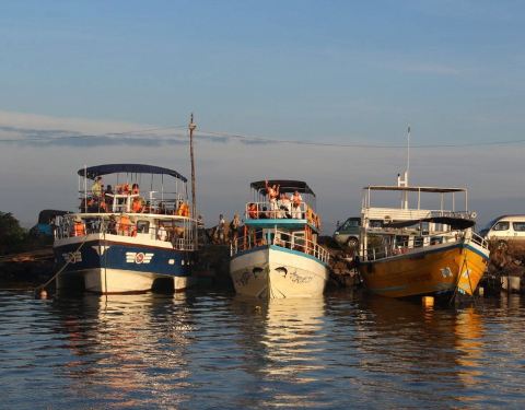4.#建议找专业大船出海# 凌晨五点起床乘坐tuktuk前往港口搭船,如果自己去找渔船可能会便宜到3000每人,但是船较小,由于行程远,海上风浪大,建议还是找官方的船只比较安全,船上的专业救生员也比较多。旅行,安全第一。