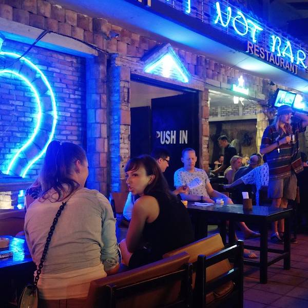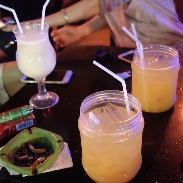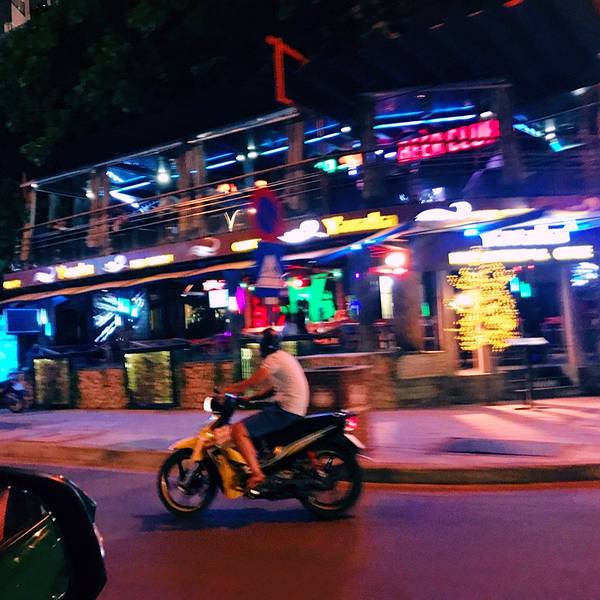 然后,我们就去了芽庄的酒吧街,芽庄的酒吧街跟泰国的考山路跟胡志明的范老五街比,小巫见大巫,非常小,人气也不行。我们找了家人最多的酒吧坐下来喝了似乎酒吧每个人都会点的酒,其实就是伏特加加果汁,味道不错,居然也喝得微醺,酒吧里都是老外,而且我觉得俄罗斯人偏多。俄罗斯人真的超级喜欢东南亚,去年在斯里兰卡也是很多俄罗斯人,而越南都快成为俄罗斯人的三亚了。俄国妹子高大威猛美丽豪放,有喝醉被抬出去的,也有主动过来跟我们照相的。路上捡的小伙伴真的很暗,所以都有点虚,没办法,只有这些了。