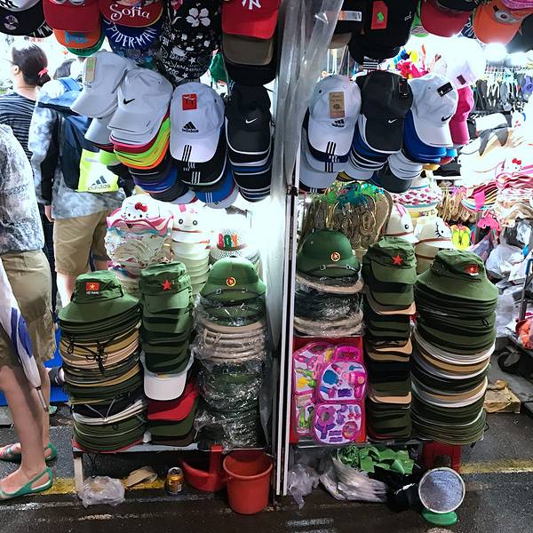 会展中心旁边是夜市,中规中矩,各种小商品、小零食、摆件、配饰,还有极具越南特色的绿帽子
