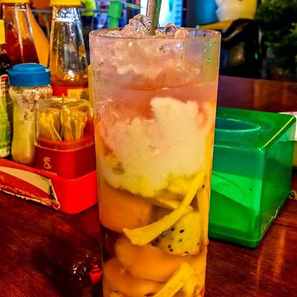 然而,我最喜欢在夜市这里吃水果捞,以及豆沙冰,每晚必吃两碗。