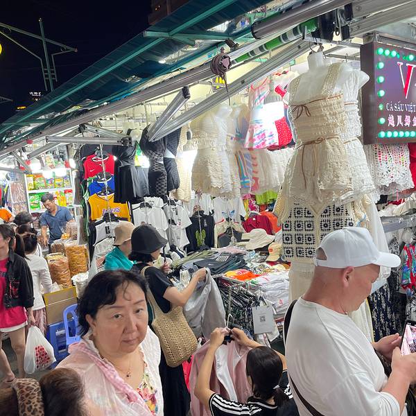 越南🇻🇳芽庄【芽庄夜市】 很短的一个小市场,都是小商品,大约150米长,基本没小吃摊,全都是韩国游客。 不推荐来,都是破烂货摊位,没啥正经东西,也没啥吃喝。