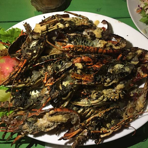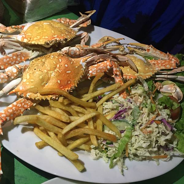 晚上沙滩上有海鲜可以吃,虽然他们做得很难吃。