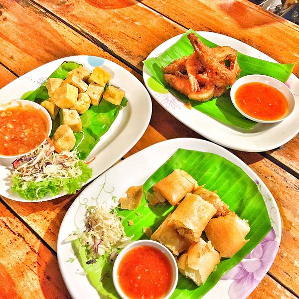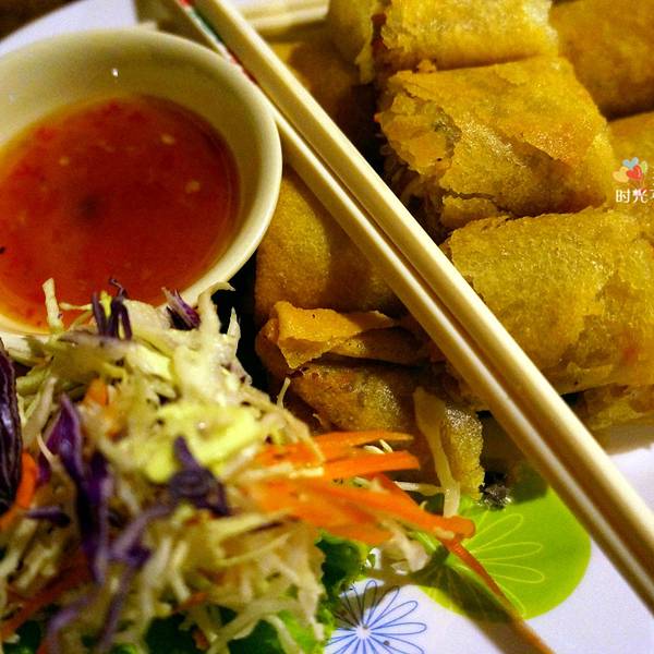 拜县第一顿晚餐选择了Na's kitchen 餐厅很容易找到,就在镇上的中心地带 T酱作为吃货表示极力推荐这个类似春卷,松脆可口 配上特制在蘸酱 那种味蕾的满足感只有亲自尝了才能体会 辣中带酸的口感真是绝了冬阴功的味道都是大同小异 看个人是否对这个味道感冒 反正完全就是重口味产物一杯普通的冰奶茶都让我们惊艳 加冰后更为清甜爽口 奶醇茶香,喝完后回味无穷 这就是泰式奶茶的独有魅力吃完这顿终于知道什么叫做满足感 一顿晚餐220B,瞧瞧这杠杠滴性价比