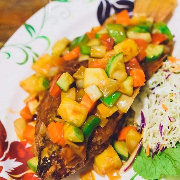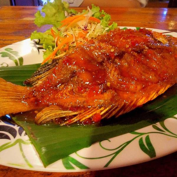 推薦這家餐廳 其实是拜县已经很有名的餐厅 但我在推荐下! 烤魚選擇了甜辣口味 實在好吃