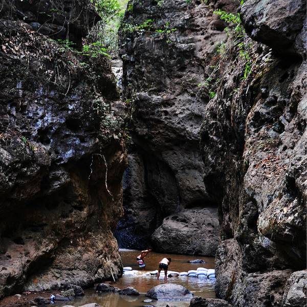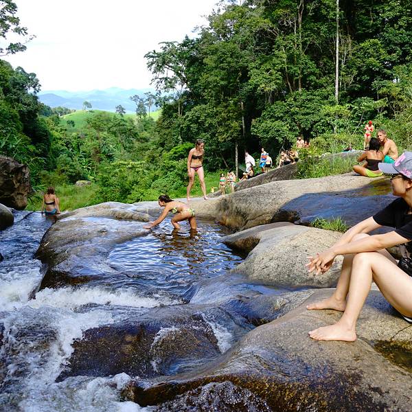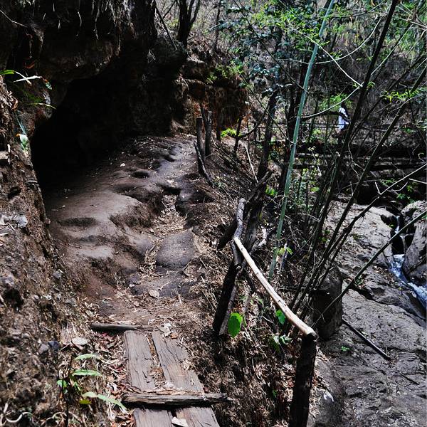 瀑布上面是一条河,突然的山势变化形成了这个规模不大却趣味十足的瀑布。瀑布分了好几层,每一层有一个小水潭,这就成了天然泳池。联结每一层之间的瀑布水流,形成了天然滑梯,胆子大的人就从这滑梯上哗啦一下滑入潭水,溅起水花一片。 展开