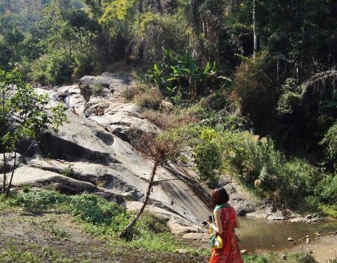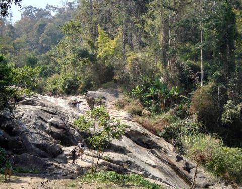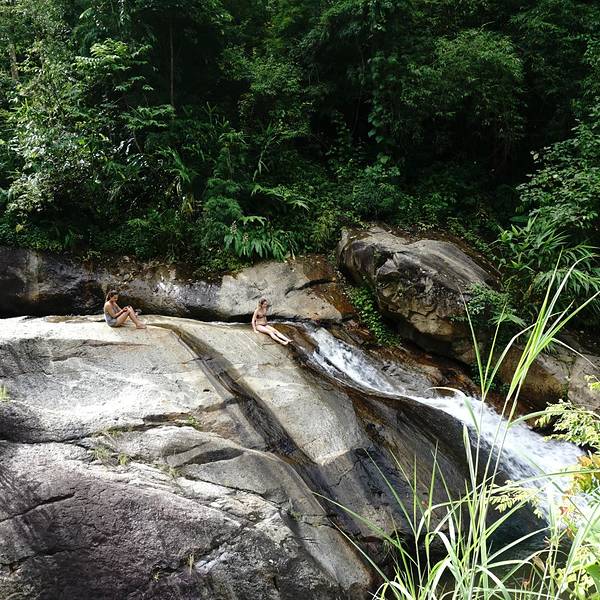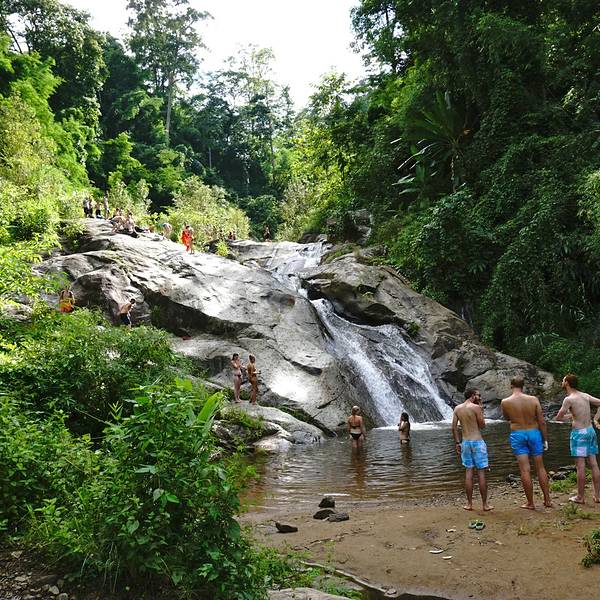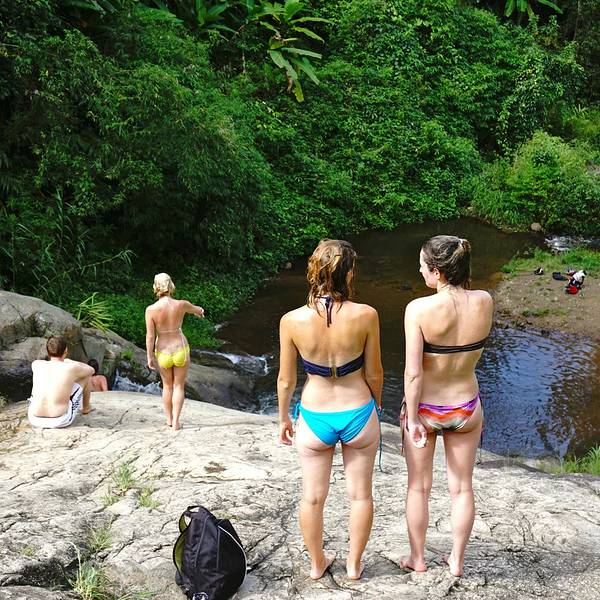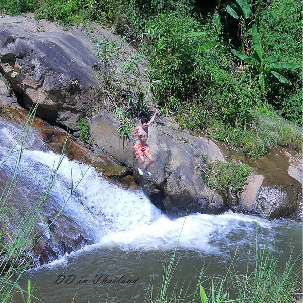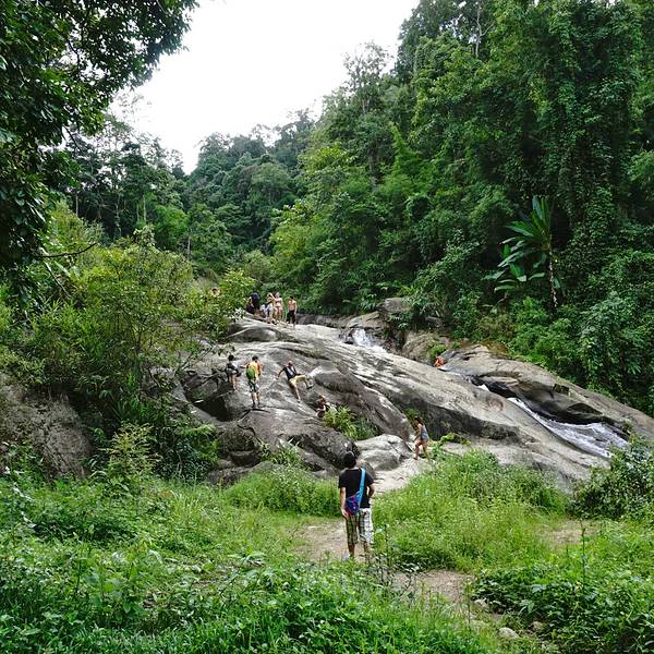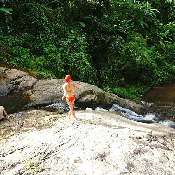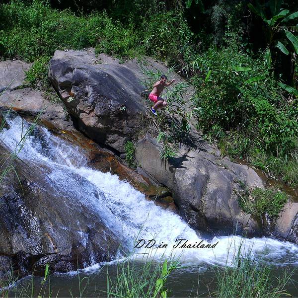瀑布也是很迷你的啦,不过老外依然很high啊,他们是见水必入瀑布mar paeng waterfall: