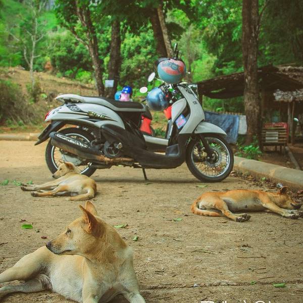 这还比不过咱江浙沪包邮地区的山间小泉水呢!这三只完全无视我们要推车的行动,还是管自己呼呼大睡今天上午去的是Pai县西边云来观景这一线,(因为我们住的Baan Chodkee Pai处于县中心范围内偏西,离西线更方便;而下午要搬去的那个郊外民宿则在北线田野中,刚好可以去“草莓园-二站桥-大峡谷”一圈逛一逛。订住...今天上午去的是Pai县西边云来观景这一线,(因为我们住的Baan Chodkee Pai处于县中心范围内偏西,离西线更方便;而下午要搬去的那个郊外民宿则在北线田野中,刚好可以去“草莓园-二站桥-大峡谷”一圈逛一逛。订住宿时可没这么神算,但是领到地图规划线路就发现这样的设计好棒!)于是,我们的第一站是西线最远的磨班瀑布(Mor Paeng Waterfall)。来到磨班瀑布,大呼坑爹。这小水流就是瀑布?这还比不过咱江浙沪包邮地区的山间小泉水呢!自然淙淙而来,也就匆匆而去。一只绿色的蜻蜓Pai县的汪星人不止是不怕人,简直懒到令人发指!这三只完全无视我们要推车的行动,还是管自己呼呼大睡。 展开