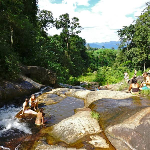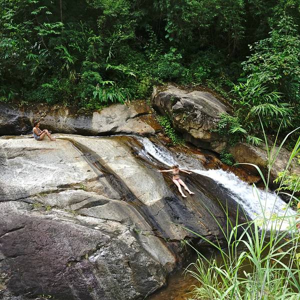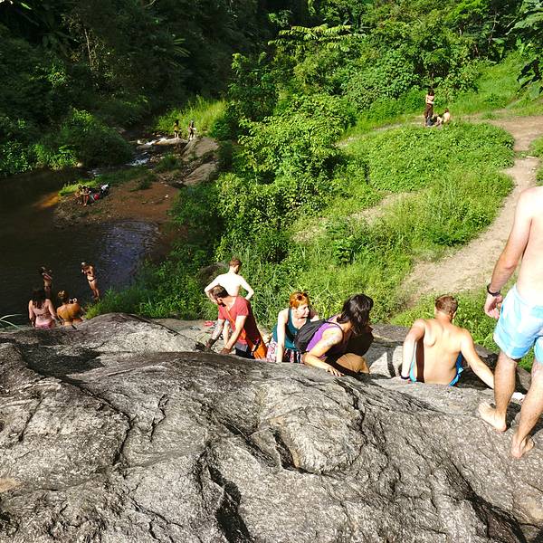 ...然不收门票、不是景区,一切都是原始状态,要爬上滑梯的最高点,也并没有现成的路径,是要攀爬岩石的这个瀑布距离县城也不远,大概也是十来分钟的车程,很隐秘,很原始,很自然,不收门票,无人管理,简直就是一个秘境般的乐园。一路上遇到不少老外骑着摩托车、穿着比基尼来往于此,脸上流露着心照不宣的笑容——...这个瀑布距离县城也不远,大概也是十来分钟的车程,很隐秘,很原始,很自然,不收门票,无人管理,简直就是一个秘境般的乐园。一路上遇到不少老外骑着摩托车、穿着比基尼来往于此,脸上流露着心照不宣的笑容——好像在说:“你也发现了这里呀!”