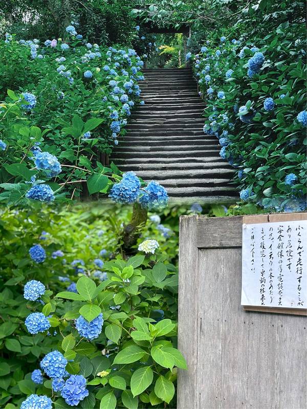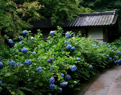 非常漂亮的院子。然而,即使是在一个下雨的周二中午,这里还是人满为患这比我想象的要好很多,整个寺庙的地面几乎被蓝绣球花覆盖了。然而,即使是在一个下雨的周二中午,这里还是人满为患。非常漂亮的院子。