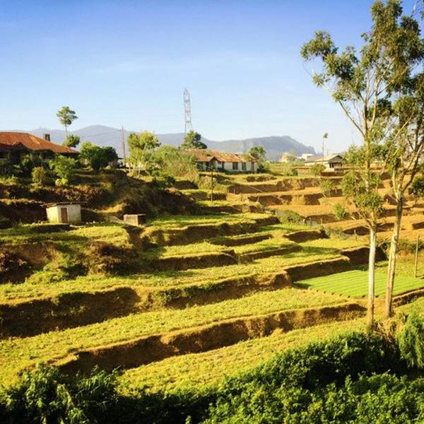买了一些茶叶之后,我们就继续出发去努瓦勒埃利耶市场,途中Krishan在一个可以看到山顶房屋的地方停了下来打了个电话,他说顶上很多旗的房间旁边那家就是他家,他正打电话给他妈妈,他妈妈在跟他招手呢。小伙子出...