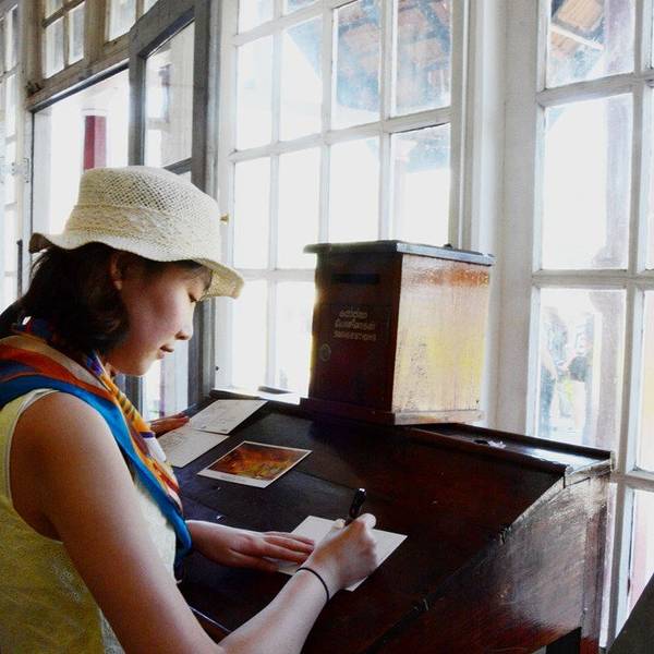 买了一些茶叶之后,我们就继续出发去努瓦勒埃利耶市场,途中Krishan在一个可以看到山顶房屋的地方停了下来打了个电话,他说顶上很多旗的房间旁边那家就是他家,他正打电话给他妈妈,他妈妈在跟他招手呢。小伙子出门在外,一说到家里,笑容就特别灿烂,我们也不禁为之动容,使劲儿招手以回应,也不知道山上的妈妈是否可以看到呢?大约又开了20来分钟,我们抵达市场。这不知道是报刊亭,还是投注亭。这是我们中午吃饭餐厅的旁边,里面很多假耐克等运动服饰。邮局