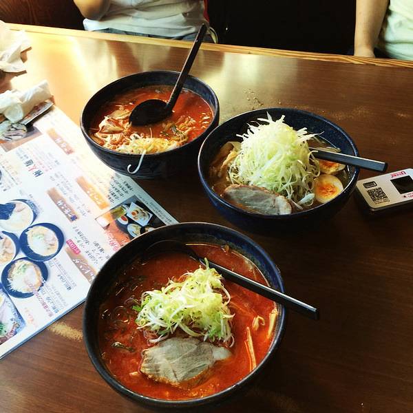 红红的骨汤看着真有食欲,辣椒的香气扑面而来。一捧细葱丝,2片叉烧肉。挑起面来发现和国内日式拉面有所不同,面条很像方便面,但更透亮更有韧劲儿。迫不及待抄起筷子,第一口浓郁,第二口热辣,鲜嫩的叉烧和弹牙的面条刺激着味蕾,再喝口汤那才叫过瘾!不一会儿,我额头上就冒出了汗珠。