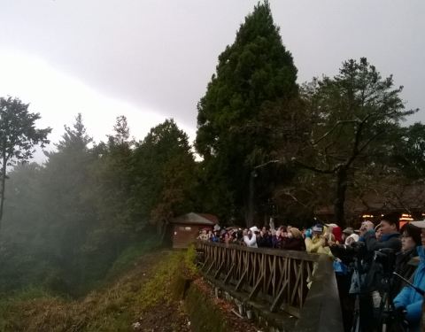生日这一天能够看到阿里山的日出,真是圆满了!早晨五点多就集合去祝山看日出惹,山峦叠嶂,很有味道早晨五点多就集合去祝山看日出惹,山峦叠嶂,很有味道!同行的是上海来的老夫妻,大叔是摄影爱好者,三脚架镜头都带足,一不小心一个镜头掉进山沟里了,他还冒险爬下去捡,看得我都捏把汗。