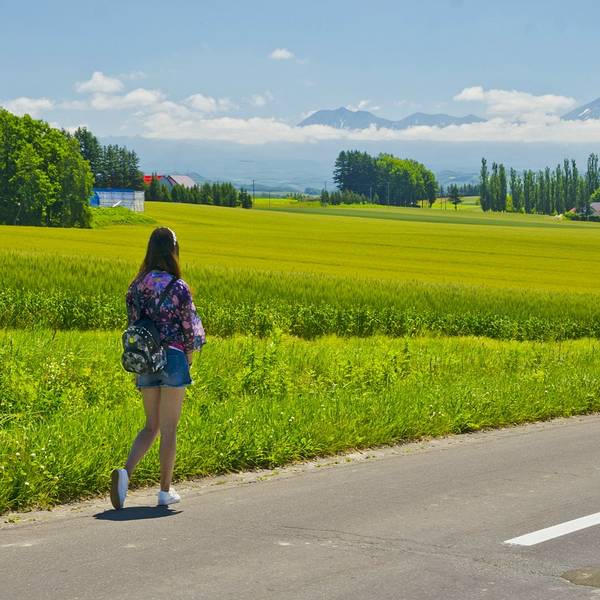 拼布之路是一条田间的小路,路两旁是起伏的丘陵,在土地上种植着麦田、荞麦田、土豆田等各种颜色的农田,远远望去就像一块块彩色的拼图。这里还有拍摄过Skyline汽车广告的Ken & Mary之树和因七星香烟广告而出名的七星之树。 这样的乡间小路非常适合散步和骑行,慢悠悠的欣赏周边的田园景色。JR美瑛站周围有好几家租借自行车的店铺,普通自行车的租金一般为200日元/小时,电动自行车则约600日元/小时,因为丘陵地形骑起来还是比较费劲的,你可以量力选择适合的自行车。 租车店一般都会提供各种地图和旅游小册子,有的还能寄存行李,方便你轻装上阵,或者到JR美瑛站旁的四季情报馆也可以寄存。 从JR美瑛站出发,走车站后方的237国道,依照路牌及地图的指引穿行在乡间公路上,就可以来到田园深处的拼布之路了。骑完全程大概要3-4小时,建议根据自己的体力调整路线。 当然,你也可以乘坐观光巴士来游览拼布之路如诗般的风景,只是少了份无所拘束的自由与对田园的亲近感。