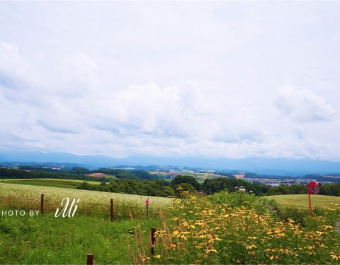 360度的眺望各個角度拍摄,每一面都能遇见不一样的风景360度的眺望各個角度拍摄,每一面都能遇见不一样的风景。蓝天、白云、田野,还有非常平整的地平线……对了,如果天气晴朗的话,还能看到远处旭川机场的起起落落的飞机呢!