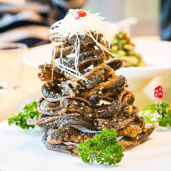 金骆驼 锡鳝老味道也是不错,很喜欢二楼雅间,可以一边欣赏当地美食,一边欣赏古镇美景。据说乾隆吃了都说好《舌尖上的中国》有一句台词我很喜欢,“无论脚步走多远,在人的脑海中,只有故乡的味道熟悉而顽固,它就像一个味觉定位系统,一头锁定了千里之外的异地,另一头则永远牵盼着,记忆深处的故乡。”对来来往往的惠...《舌尖上的中国》有一句台词我很喜欢,“无论脚步走多远,在人的脑海中,只有故乡的味道熟悉而顽固,它就像一个味觉定位系统,一头锁定了千里之外的异地,另一头则永远牵盼着,记忆深处的故乡。”对来来往往的惠山人来说,我想也概莫能外。而对我来说,不论走到哪里,当地的美食是一定不能错过的。听了无锡当地友人的推荐去了惠山古镇的老菜馆,说是很多老无锡的味道在这里都能够找寻。不得不说,老菜馆没有让人失望,不论菜式口味、环境还是服务,都让人赞不绝口,当然最让我满意的是,很多传统的菜式比如香松龙凤腿在其他地方已经吃不到,但是在这里却有幸可以品尝到,而且区别于普通大众,菜式没有太多的改良,一直坚守自己的本心和初心。梁溪脆鳝是无锡传统名菜,脆鳝由鳝丝经两次油炸而成,外观酱褐色,乌光发亮,口味甜中带成、松脆适口、味浓汁酸,即使保存几天,也不致发软。鸡子大饼对很多人来说比较陌生,即便是无锡当地的青少年可能也少闻,它是江苏无锡传统名点,也是无锡十大名点之一,承载着很多代人儿时的幸福回忆。不得不说,来得早不如来得巧,竟然在老菜馆见到了鸡子大饼的现场制作,引来无数吃货里三层外三层的围观。刚出锅的鸡子大饼,咬一口,唇齿留香。二泉雪酥。无锡人都知道惠山油酥饼黄澄澄、圆鼓鼓、外皮酥脆,呱呱叫。一口咬下去,酥脆的油酥和芝麻满口生香,内中的葱油馅或者桂花馅等等鲜香润泽,满足至极!据说乾隆吃了都说好!