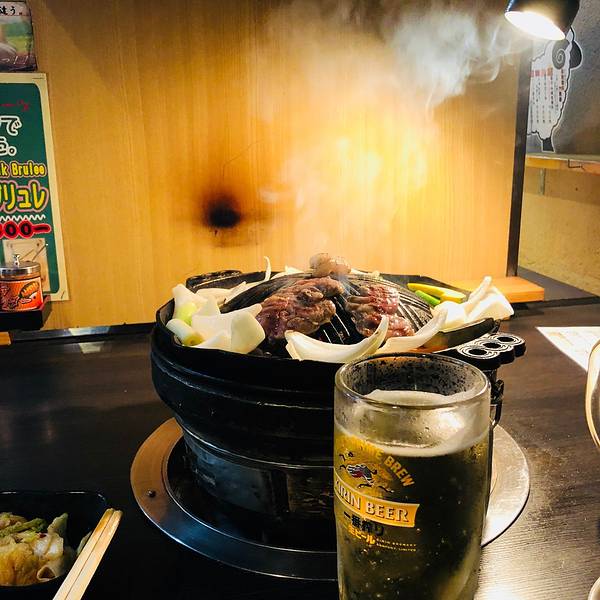 回酒店睡了一下午,每天行程 都安 排得很满,早出晚归的,休息一下午感觉一下精神好多了,磨磨蹭蹭到6点钟,终于起身去吃我期待已久的成吉思汗烤肉。傍晚的旭川 这家绝对是名副其实的网红店了,孤独的美食家里五郎介绍过,基本上每篇攻略都会提到,离我们酒店10分钟步行距离。这两天在举行浴衣节,几条街上摆满了小吃,大家都穿着浴衣,好热闹啊。基本上每个人都拿着一杯啤酒边喝边逛,大家在街边拷了串就坐在路边吃,没有想到严谨而重礼节的 日本 人在节日的时候完全放飞自我啊。我们到的时候已经排了挺长的队,拿号的小哥告诉我们大概要等40分钟。他念号的时候只念日文,生怕错过,赶紧先用翻译软件学习了我取的54号的读法。 店内比较拥挤,不知道为什么 日本 的烤肉店都很封闭,通风设施不太好,一进去就烟雾缭绕啊,味道很大,店员小哥带我们来到榻榻米座位,我正犹豫着该怎么坐,环顾四周发现大家来烤肉店都比较随意,坐姿千奇百怪,我们也找了个舒服的坐姿坐下。 这家店只有羊肉,菜单上的招牌就叫羊肉1,羊肉2,羊肉3.实际上分别是羊羔肉、羊肉卷和羊肩肉。我们先每种点了一份。蔬菜会送一份,而且蔬菜是可以免费加的。所以只用点肉就好啦,当然,啤酒是必点。这几天下来觉得 北海道 的啤酒都还挺好喝的,度数比较低。我这种平时不饮酒的人每天都想来一杯。服务员会帮忙拷一份,不用多久就肉香四溢,完全没有羊膻味,很好吃。 不一会啊,三盘肉一盘蔬菜就被我们消灭一空,又加了一盘肉1,二盘肉2.还加了一份蔬菜,感觉自己好能吃啊,这顿全肉宴价格是5340.不到350RMB,性价比还是很高的。虽然就餐环境确实不怎么样,但还是超级推荐。 回去的时候街上还是很多人,还有拿着酒的醉汉向我们搭讪,有点害怕赶紧冲回酒店。