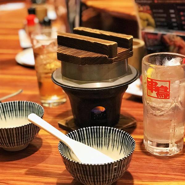 串鸟是一家在北海道尤其是 札幌 大街小巷都很容易见到的烤串专门店,也是这一程我们唯二吃了两顿的店之一。这家店也是当地人非常喜爱的店,一到晚上店里就会十分热闹,我们七点到达旭川店里时仍然需要等位,还好只等了几分钟就进去了。这家店会提供平板有其他语言的点餐,但是平板的菜单内容不如摆在桌子上日文菜单全,所以需要都看一下,有需要的再叫店员点。非常推荐串鸟的柠檬沙瓦或鲜柠檬沙瓦,区别就在于鲜柠檬是上来半颗柠檬自己往里面挤柠檬汁,而柠檬沙瓦是这样一杯上来做好的。中间这一圈位置大部分是二人或单人用餐,二人以上的就会坐到周围的单桌。七点去的时候竟然已经有一些菜品售罄了,比如最想尝试的鳗鱼饭,所以只能选了一个鸡肉饭代替,上来这样一锅锅里的米还是不熟的,点上火以后等或熄灭了才可以吃。非常推荐牛肉、黄油土豆、猪肉卷芦笋、猪肉卷生姜、鸡肉丸(芝士、紫苏)