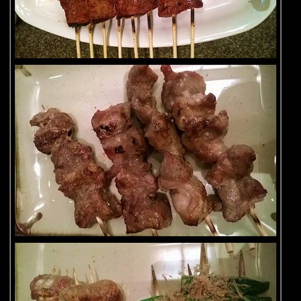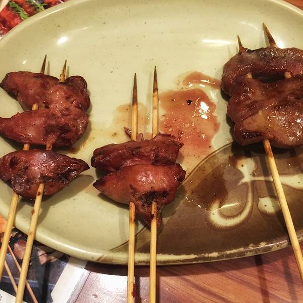 我们照着菜单点了酒和各种串,印象比较深刻的招牌三大牛肉串和鸡翅,牛肉超嫩、生啤很赞,各种好吃各种赞