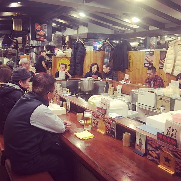 在JR上没有买到火车便当,饿着到旭川已经是晚上8点了,原本打算去离酒店不远处的山头火拉面吃饭的,结果排了十来分钟的队后被告知面已全部售罄(失望后鄙视之),孩子睡觉为重,两个孩子妈去全家买了点吃的回酒店了,两个孩子爸不死心,用大众点评搜到了串鸟,踩着google地图去果腹。 串鸟是日本很常见的连锁居酒屋,以烤串为主,东西味道不错,又便宜,所以很多日本当地人下班后也很喜欢在里面喝酒聊天撸串,所以有名气的串鸟店每天都要排队。我们照着菜单点了酒和各种串,印象比较深刻的招牌三大牛肉串和鸡翅,牛肉超嫩、生啤很赞,各种好吃各种赞!看到面前的签桶了吗?这是我们第一次冲击波的战果。