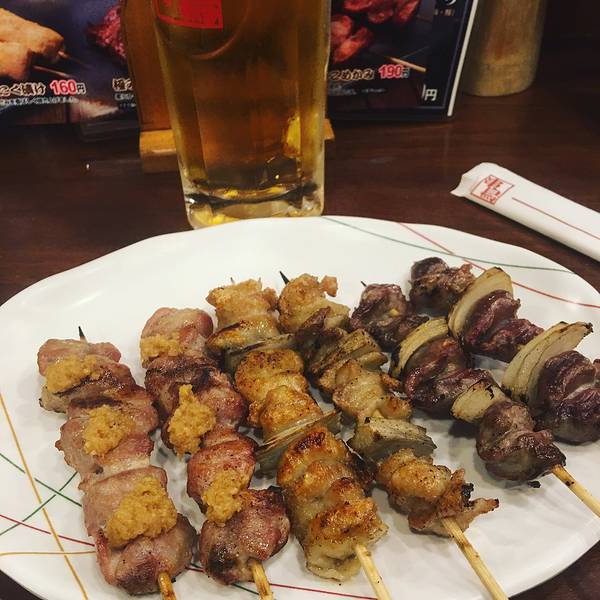 到了出名的串鸟 人气非常旺 需要排队等位哦 会有一杯鸡汤 很鲜美 北海道的啤酒非常好喝 虽然我...