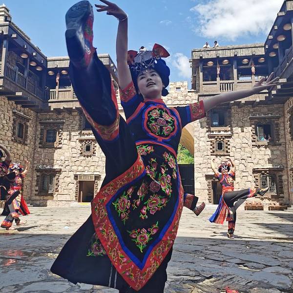 景区很大,环境优美,建筑物很有民族特色,晚上的表演很棒。