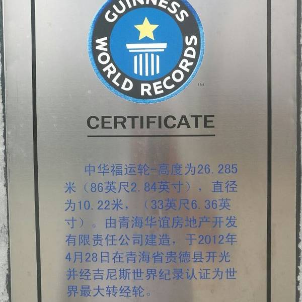 中华福运轮!以黄河水为主动力转动吉尼斯记录世界最大转经筒以黄河水为主动力转动吉尼斯记录世界最大转经筒!中华福运轮!建成后由班禅带领108位活佛开光加持。天下黄河贵德清,万里黄河清澈的一段就在贵德!