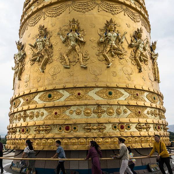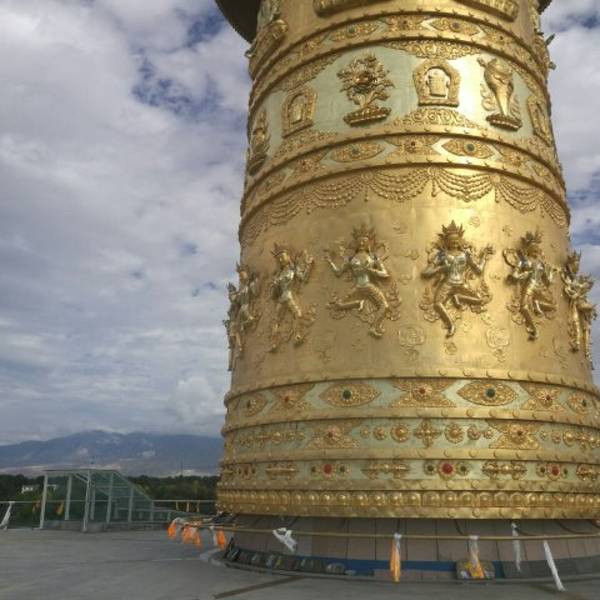 民宿博物馆、数字互动展示厅下午我们来到了中华福运轮,天慢慢阴下来,下起了绵绵细雨。据说它是世界上最高的转金轮,不过还是觉得香格里拉的更大一点。风很大,水面波纹明显,不能利用它来拍摄倒影了。但是一溜排人把手机放在水池边拍延时...下午我们来到了中华福运轮,天慢慢阴下来,下起了绵绵细雨。据说它是世界上最高的转金轮,不过还是觉得香格里拉的更大一点。风很大,水面波纹明显,不能利用它来拍摄倒影了。但是一溜排人把手机放在水池边拍延时还是很壮观的场景。延时变化不是特别大,除了水波那叫一个明快的晃动~经纶自上而下用紫铜以浮雕形式制造,外镀金箔,浮雕缎铸有菩萨像、经文等。民宿博物馆、数字互动展示厅馆内最吸引眼球的就属这个坛城沙画,颜色丰富多彩,可见制作之精细。 展开