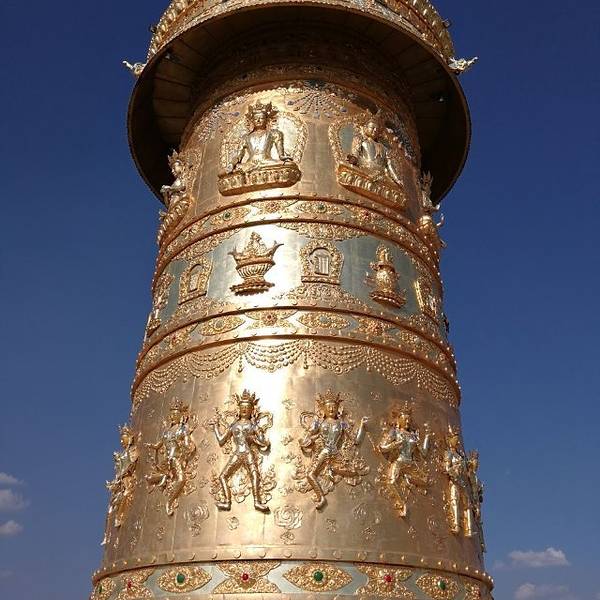 转经轮采用水动力转动,也可以在平台上推动,经纶内部藏有36亿字的六字真言,记得如果上去转的话一定要连转三圈。 展开