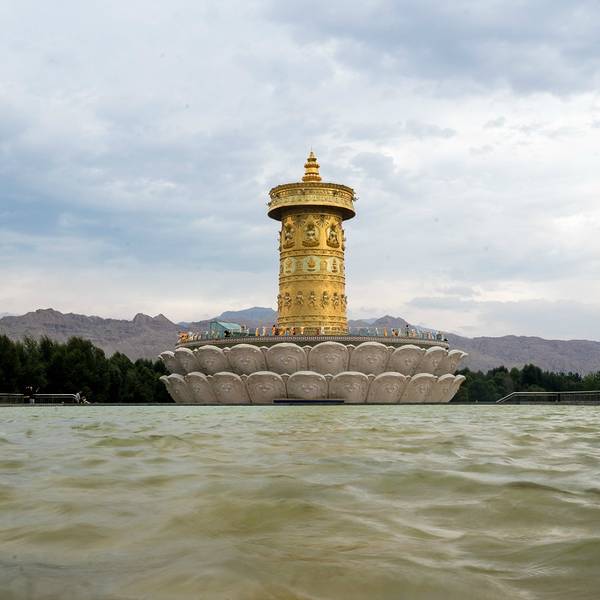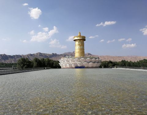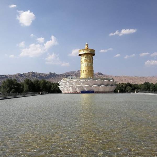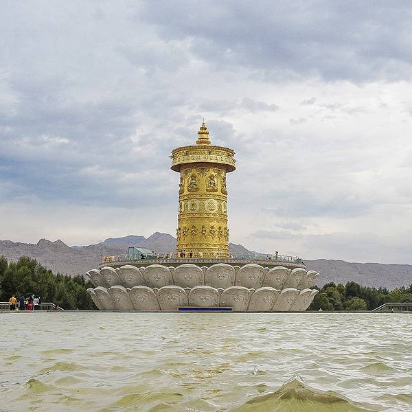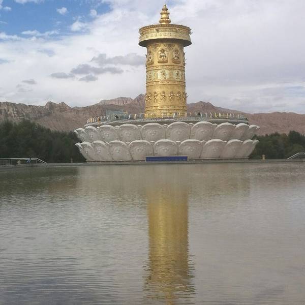 中华福运轮景区三面环绕人工湖,另一面由清清黄河构成天然屏障,茂密的高原丛林又给景区增添了神秘的色彩中华福运轮景区三面环绕人工湖,另一面由清清黄河构成天然屏障,茂密的高原丛林又给景区增添了神秘的色彩。中华福运轮是世界上唯一一个采用黄河水作动力,也是目前为止世界上最高、最大、转动方式最为独特的藏式...中华福运轮景区三面环绕人工湖,另一面由清清黄河构成天然屏障,茂密的高原丛林又给景区增添了神秘的色彩。中华福运轮是世界上唯一一个采用黄河水作动力,也是目前为止世界上最高、最大、转动方式最为独特的藏式转经轮。这是倒影池,那天风大而且乌云密布,估计天气好的时候能看到很好看的倒影吧...爬上藏经楼可以看到大大的转经筒....经轮主体高42米,其中经筒高度26.3米,直径为10.22米,底座高15米的转经纶,为世界上最大的转经轮,于2012年获颁吉尼斯世界纪录。它是由传统的水推动原理,推动整个经轮转动。 展开