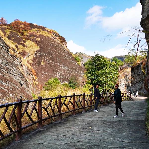 风景很好,没什么商业气息,人也不多,空气蛮不错比较典型的丹霞地貌,山上有点秃,露出了红色的土壤,来这里主要是欣赏奇特的石头和山峰。风景很好,没什么商业气息,人也不多,空气蛮不错。