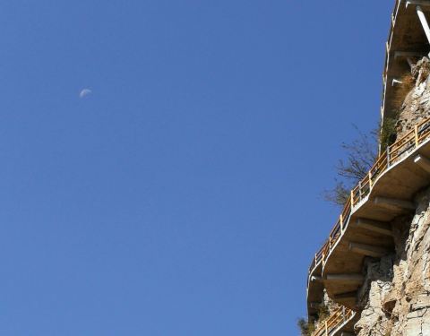 南太行中一个开发的比较成熟的景区,在河北涉县,交通比较方便,上山有三条道,索道上去沿栈道绕行,它比较轻松,下山走中路还是比较险的。