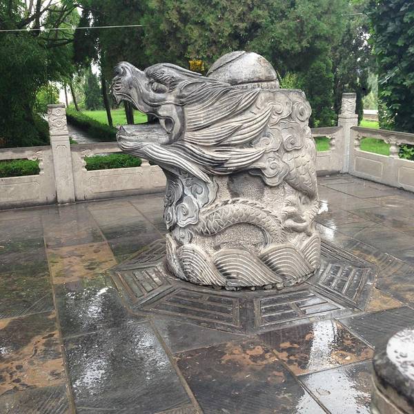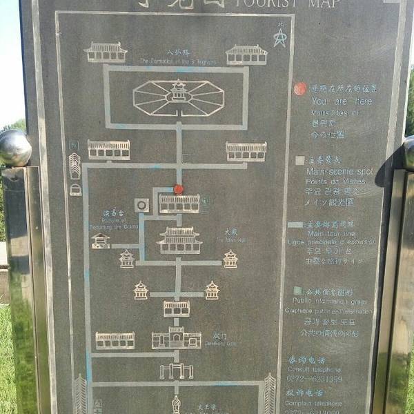话说2016年5月的最后一天,我们有机会来到中原大地历史悠久的号称“七大古都”的安阳,有机会领略汤阴县里面的历史上最古老的国家监狱之称的——羑里城,当地人管这里叫“文王庙”,当年殷纣王曾经囚禁周文王的地方,现存的建筑应该是明代的建筑吧。客户用车拉我们去的时候,天已经下起来小雨,雨中游览不失一种探古寻幽的味道。正门是一个三门式的牌坊,门前很空旷,停车位很多,因为下雨的缘故,还是周二的原因,还是汤阴这地方经济不发达的原因,当天的游客只有我们。左右各有一个便门羑里城的地图:进到正门里面,对着大门就是高大的文王雕像;在雨中矗立着,沉思着看我们这些冒雨而来的游览者。上书三个大字“演易坊”据说周文王在这里将八卦演绎成六十四卦。过了演易坊,有2座石碑,上了土台,就是传说拘役周文王的地方,应该是明代重修的建筑。这里有河图洛书的壁画正殿是周文王的享殿,里面有10副彩绘壁画,周朝的重大历史事件出了正殿,后面有个水井,据说最初周文王打得井,现在还能发展到人拍龙头自动出水的效果,当然了,每杯水收费2元。再往后走,就是后来修的八卦迷宫了,小朋友们喜欢,在这里从入口进出,出口出来,走对了需要至少30分钟以上,走不对,就在里面乱转。很有意思羑里城的西侧有个演易台过了演易台,往南走,有个坟包,石头砌成,传说中的文王吐出伯邑考肉饼的地方羑里城历史悠久,自古就是人类繁衍生息的地方,据说这里是龙山文化的遗址,有上古的土方遗址,现已经修成大殿保护下雨中,小蜗牛也来凑热闹,被我拍了我的旅游时间:2016年5月31日