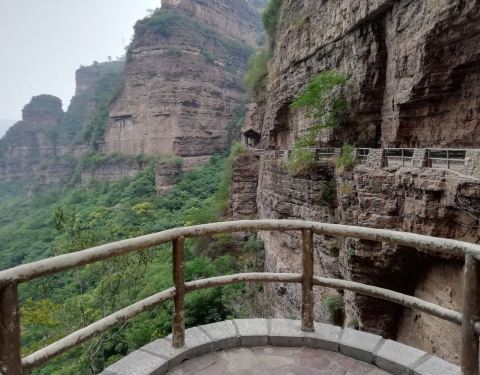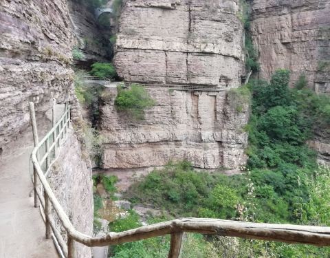 第二天去太行屋脊登山。崖壁上的栈道。崖壁上的栈道。崖壁上的栈道。小美女玩的高兴。黄大师还在看手相第二天去太行屋脊登山。