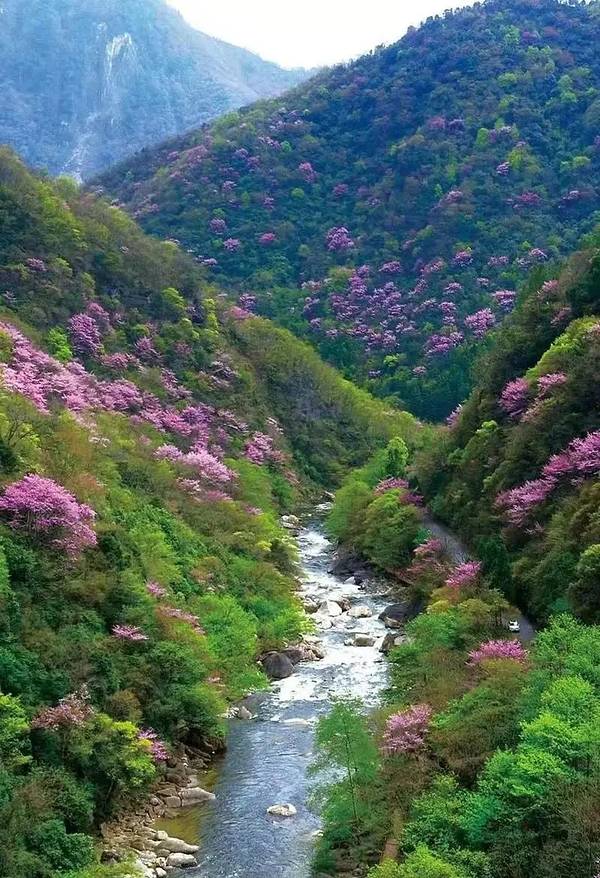 大自然风情人间四月芳菲尽,唐家河里面的紫荆花开的格外艳丽,享受了一场大自然最美的色彩点缀。