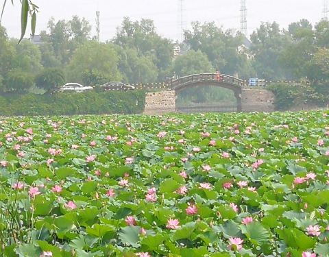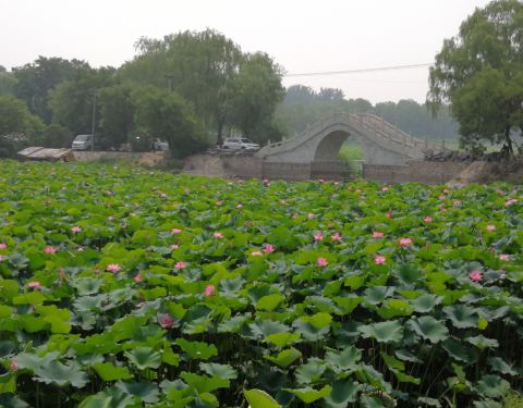 3、沿河北岸向西1公里到达上庄钓鱼岛划船或竹筏,采荷花摘莲蓬。